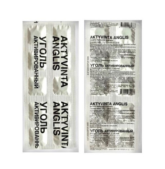 Состав: Активированный уголь 0,25г, вспомагательные вещества: крахмал, тальк -0,03г.