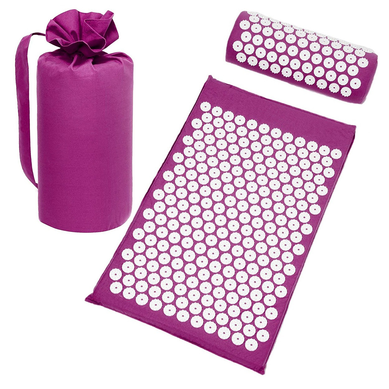 Акупунктурный набор включает коврик размером 68х42 см и подушку размером 40х15 см, удобно упакованные в сумку для хранения и переноски.