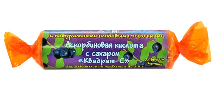 Состав: сахар, глюкоза, картофельный крахмал, L-аскорбиновая кислота, разделяющее вещество: жирная кислота (E570), натуральный фруктовый порошок, пищевые ароматизаторы: вишня, апельсин, клубника, клюква, черника.