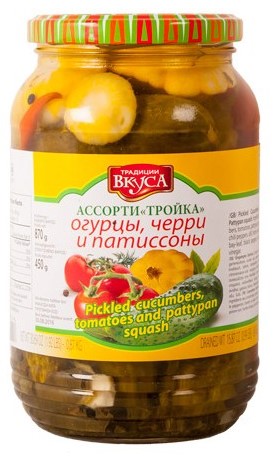 Ассорти из помидоров, огурцов и патиссонов 870г Традиция вкуса