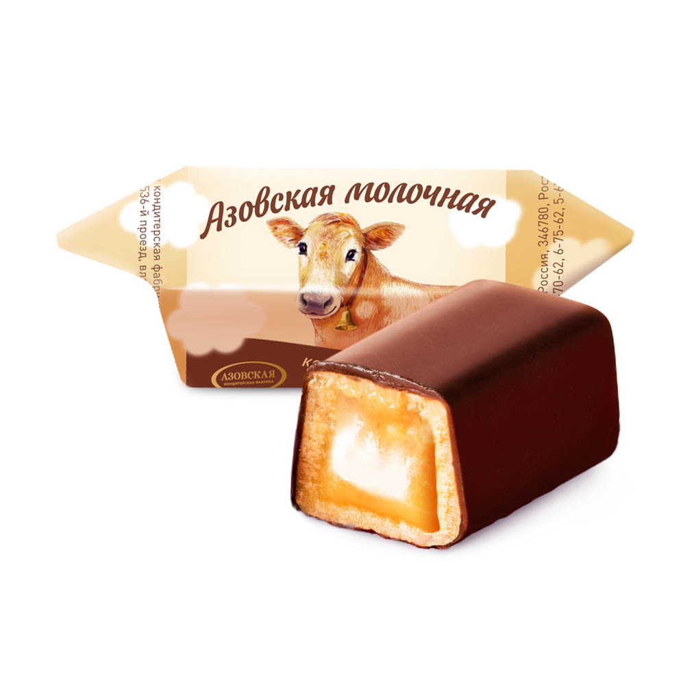 Конфета "Азовская" молочная" это лакомство в яркой обертке, вкус которого все помнят с детства. Классический вкус привычной всем Коровки в этой конфете раскрывается практически сразу. Десерт станет отличной питательной заменой быстрым перекусам. Конфеты "Азовская коровка" отличаются ярко выраженным сливочным вкусом и нежным ароматом сгущенного молока.
