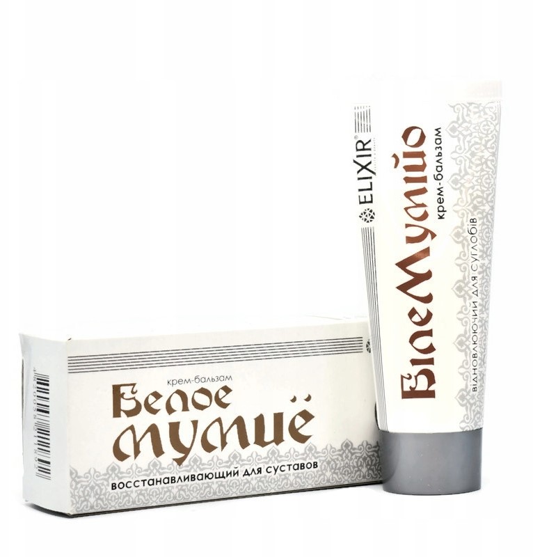 Bílé mumio (kamenný olej) je úžasná a velmi cenná přírodní látka. Jeho léčivé vlastnosti jsou natolik rozsáhlé, že ho lze použít téměř u všech nemocí, protože primárně působí na imunitní systém, to znamená, že zvyšuje obranyschopnost těla. Obsahuje více než tucet cenných mikroelementů, které jsou životně důležité pro naše tělo. Vlastnosti krémového balzámu: výrazně snižuje bolest, podporuje vylučování solí, stimuluje regeneraci tkání, zlepšuje krevní oběh v místě aplikace, má uklidňující účinek, má antiseptický účinek.