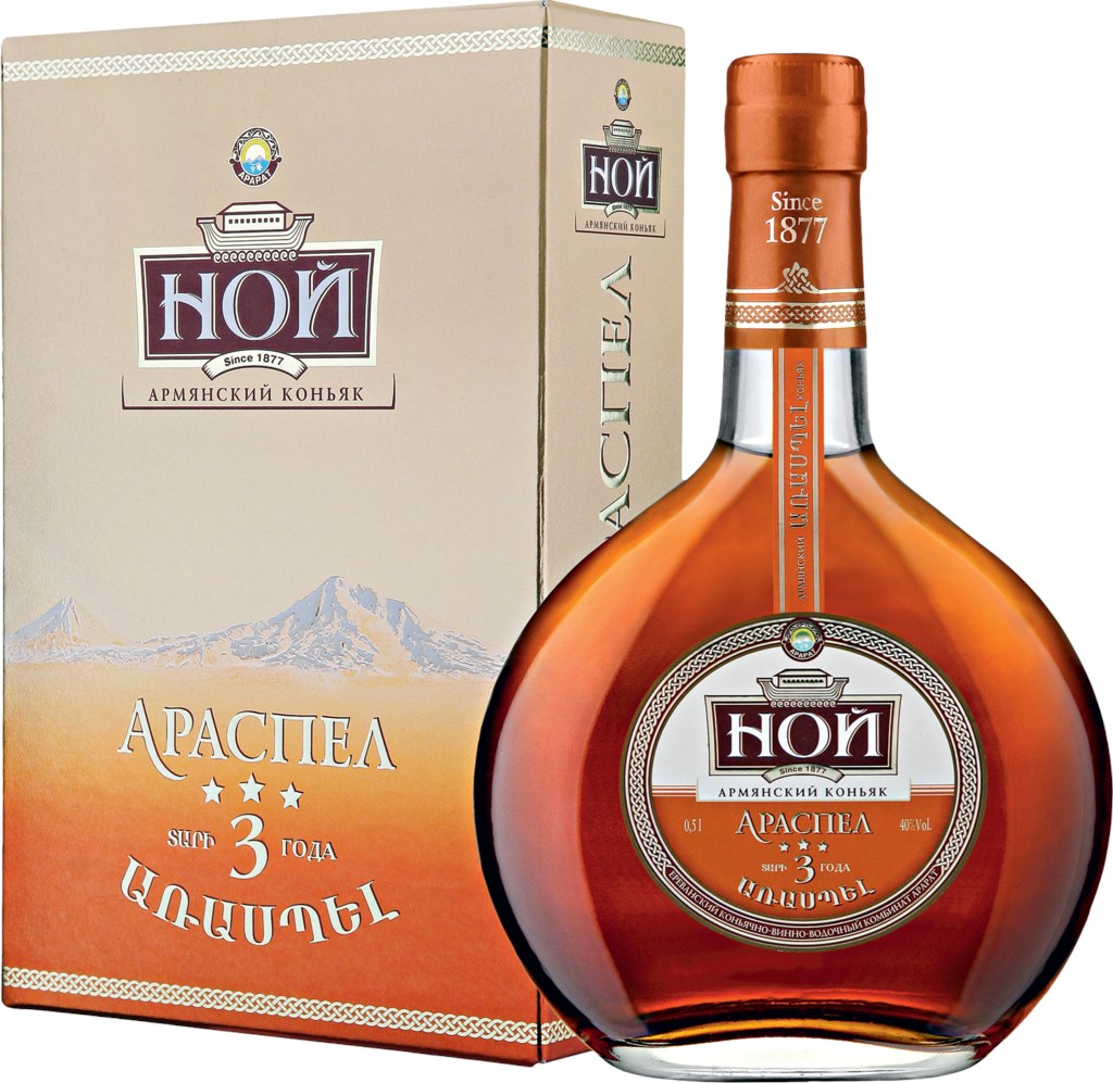 Армянский коньяк производится из винограда, выращенного в долине горы Арарат в Армении. Происхождение названия бренди "Araspel" происходит от армянского слова, которое в переводе означает "легенду или предание". Бренди выделяется янтарно-прозрачным цветом, уникальным вкусом и ароматом миндаля и орехов. Вкус молодой, но при этом проявляется своей нежностью и мягкостью. Рекомендуется употреблять малыми глотками, подогретыми до комнатной температуры. Минимальное время выдержки бренди составляет 3 года.