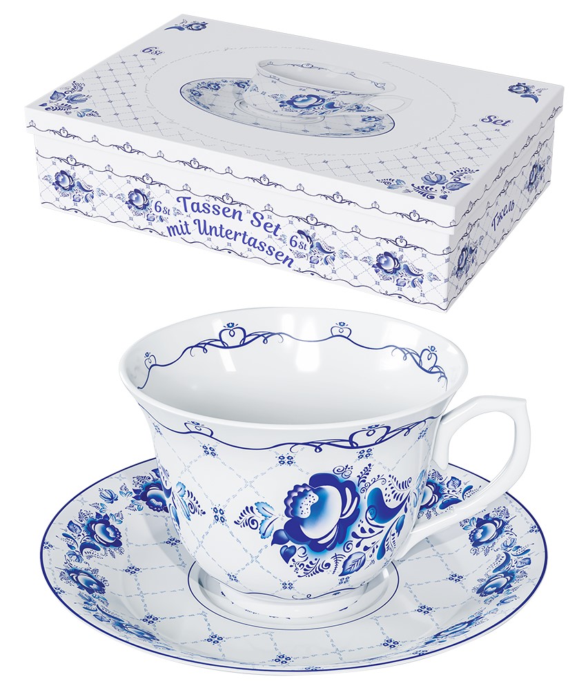 Набор кружек Гжель в подарочной упаковке. Для 6 человек.