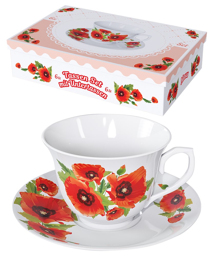 Набор кружек Маки в подарочной упаковке. Для 6 человек.