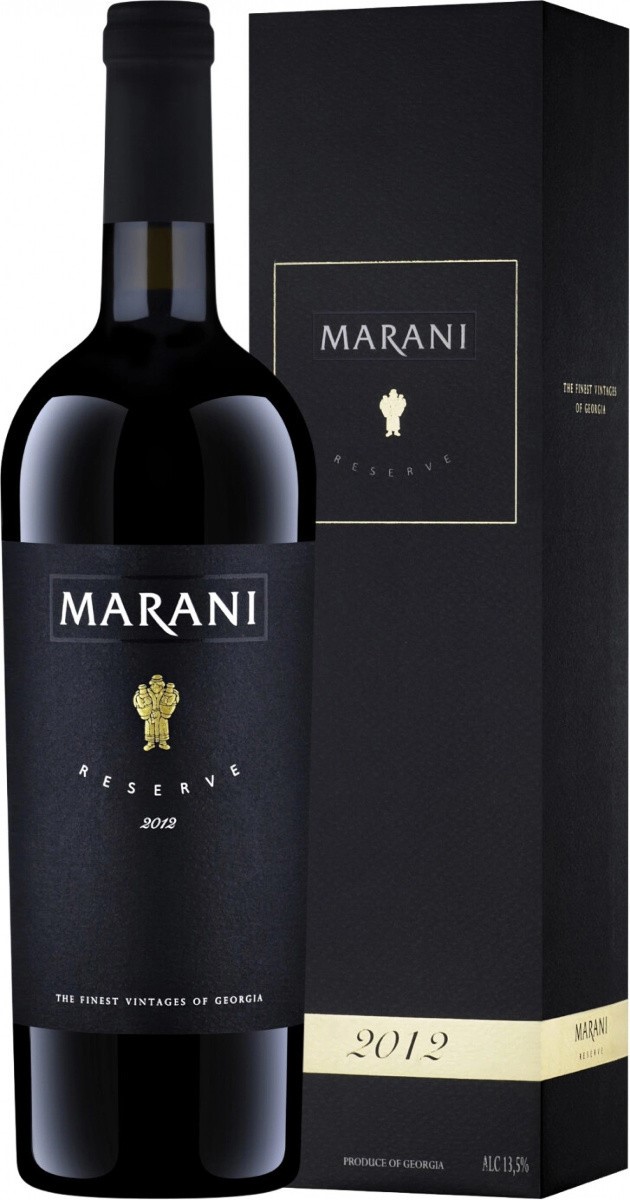 Marani Reserve 2012 Вино красное сухое виноградное. Для него характерен красивый рубиновый цвет с восхитительным фиолетовым оттенком. Ароматы интенсивные и богатые – ежевика, можжевельник, спелая вишня, смола, травы, влажный лесной подлесок, копченая дичь, кровь, свежедубленная кожа и перец. Оно обладает мрачной элегантностью, травянистостью и той характерной, понятной «худобой», которая отличает его от напыщенных выпусков современных вин. Он сбалансирован, сделан в меру. Сырой, лаконичный и сбалансированный. На нашем винограднике в Кондоли тщательно отобранный виноград высочайшего качества сорта Саперави был подвергнут ферментации в открытых дубовых бочках емкостью 225 литров. Вино выдерживалось 24 месяца в новых бочках из французского дуба. Имеет большой потенциал созревания. Его подают к мясным блюдам и сырам.
