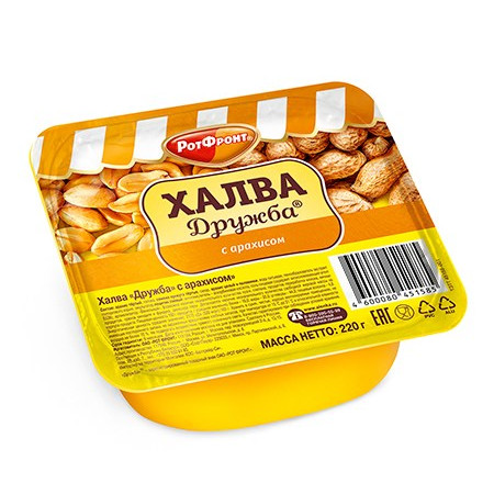 Халва «Дружба» с арахисом от фабрики «Рот Фронт» — это ароматное восточное лакомство, сочетающее в себе насыщенный вкус арахиса и традиционный кунжутный аромат. С добавлением крупных орехов арахиса, халва обладает многогранным вкусом, в котором переплетаются пикантные нотки арахиса, терпкий кунжутный дух, лёгкие ванильные оттенки и нежная сахарно-медовая сладость. Тонкая слоистая структура тающей халвы дополняется хрустящими ядрышками арахиса.