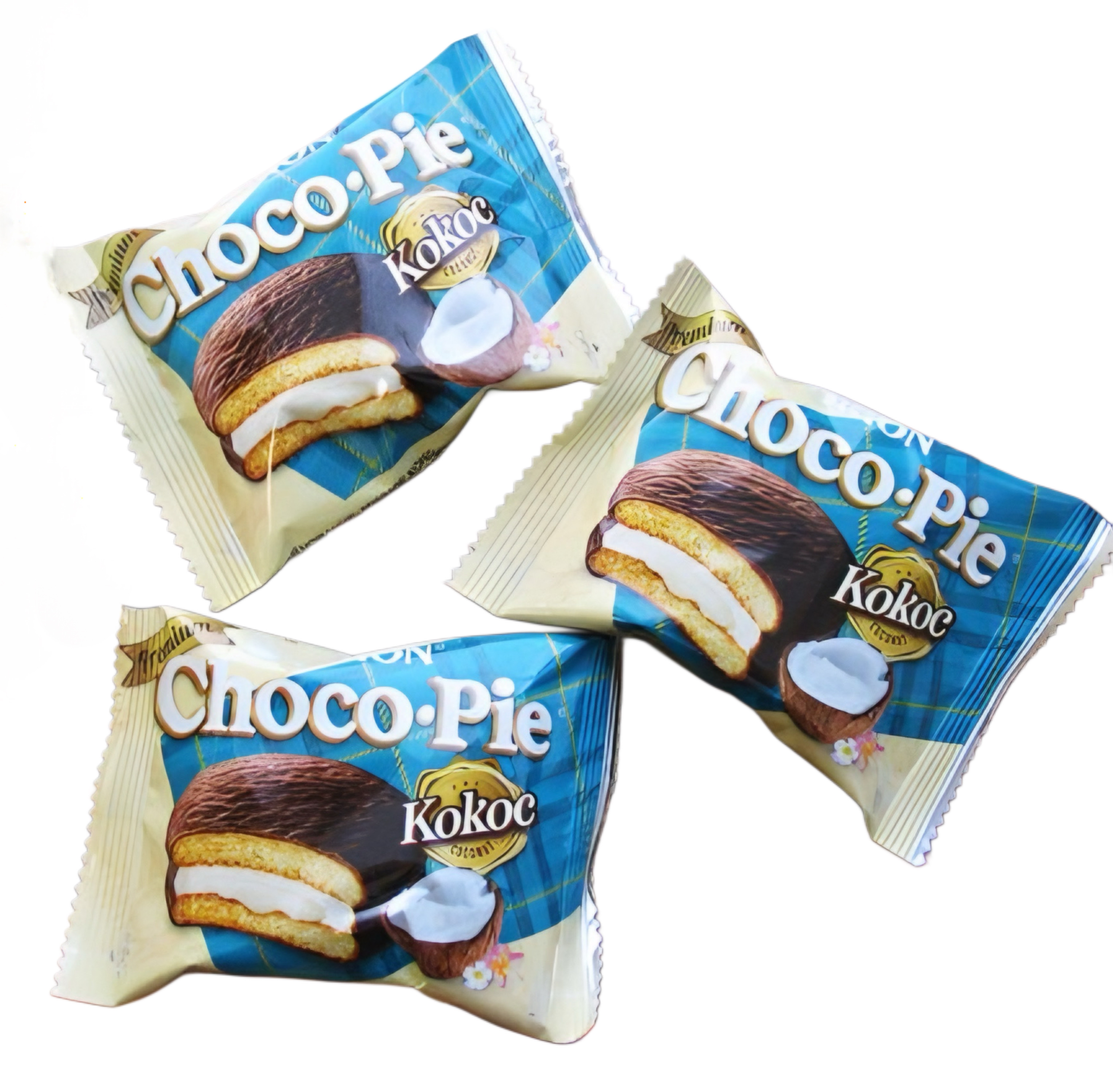 Choco Pie с вкусом тропического кокоса представляет собой гармоничное сочетание шоколада, воздушного пирожного, кокосовых хлопьев, суфле и невероятно нежной кокосовой начинки, которая придает изделию неповторимый вкус, который нельзя спутать ни с чем другим.