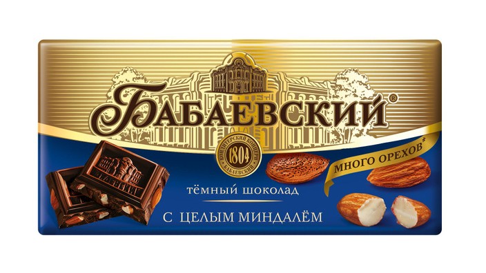 Состав:Какао тёртое, сахар, ядро ореха миндаля целое, масло какао, жир молочный, эмульгаторы: лецитин соевый, Е476; спирт этиловый ректификованный (0,3%), чай, ароматизатор «Ваниль». Массовая доля общего сухого остатка какао – не менее 40%,