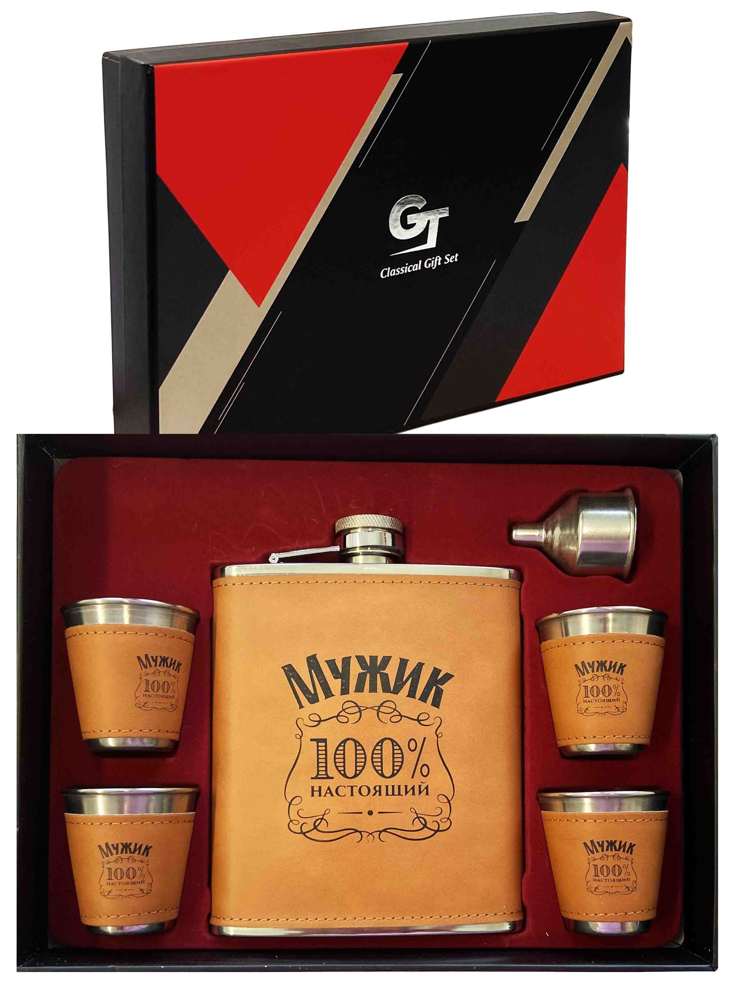 Подарочный набор, состоящий из карманной фляги объемом 540 мл и 4 стопок под названием «100% Настоящий мужик». Этот эксклюзивный набор станет идеальным подарком для настоящего парня, который ценит качественные напитки и времяпрепровождение в компании друзей. Карманная бутылка достаточного объема позволяет удобно носить с собой любимый напиток, куда бы вы ни пошли, а стопки «100% Настоящий мужик» придают особенным моментам еще больше шарма и аутентичности. Этот набор — отличный способ прославить мужественность и дружбу в одном.