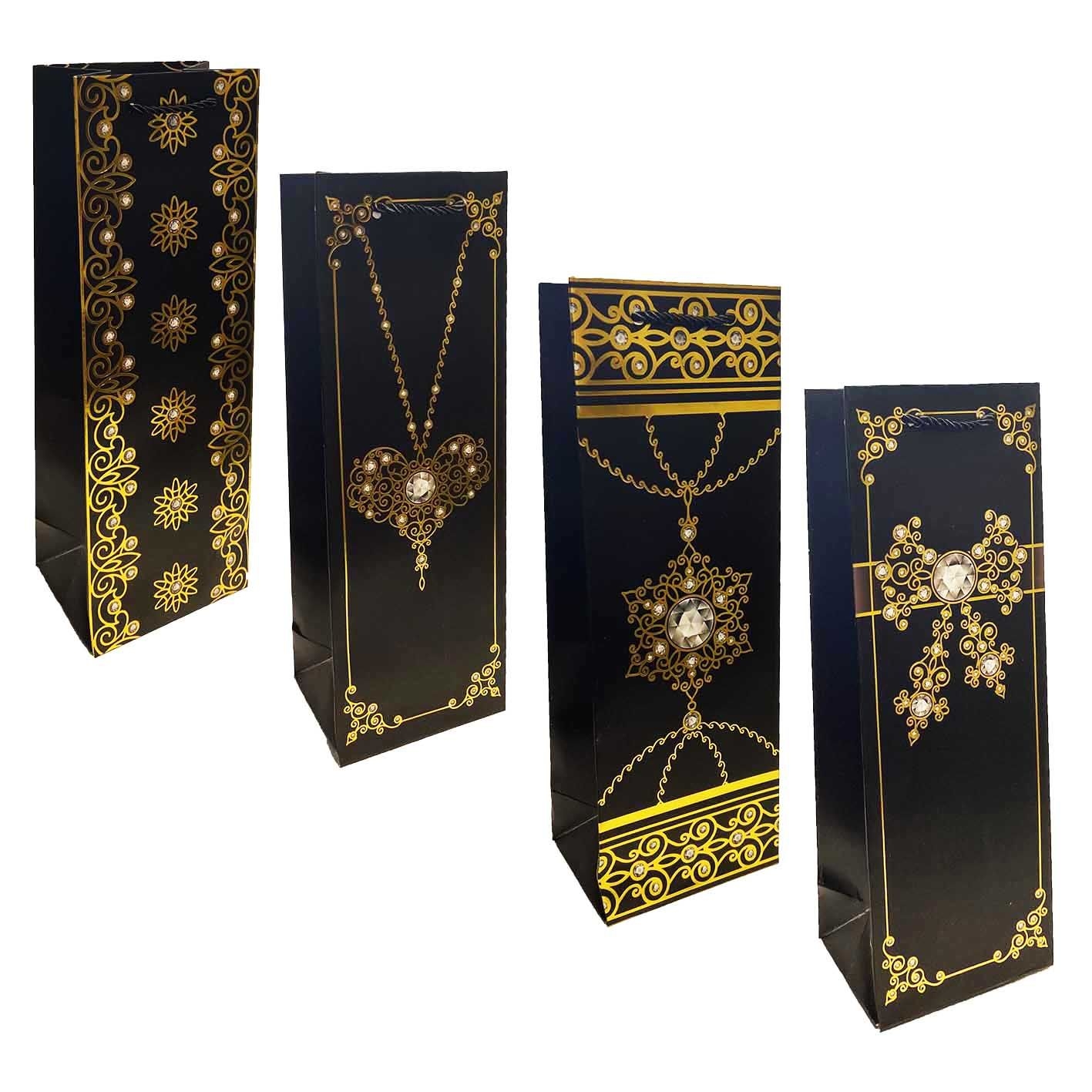 Подарочный пакет для бутылки 36×13см «Золотые украшения»