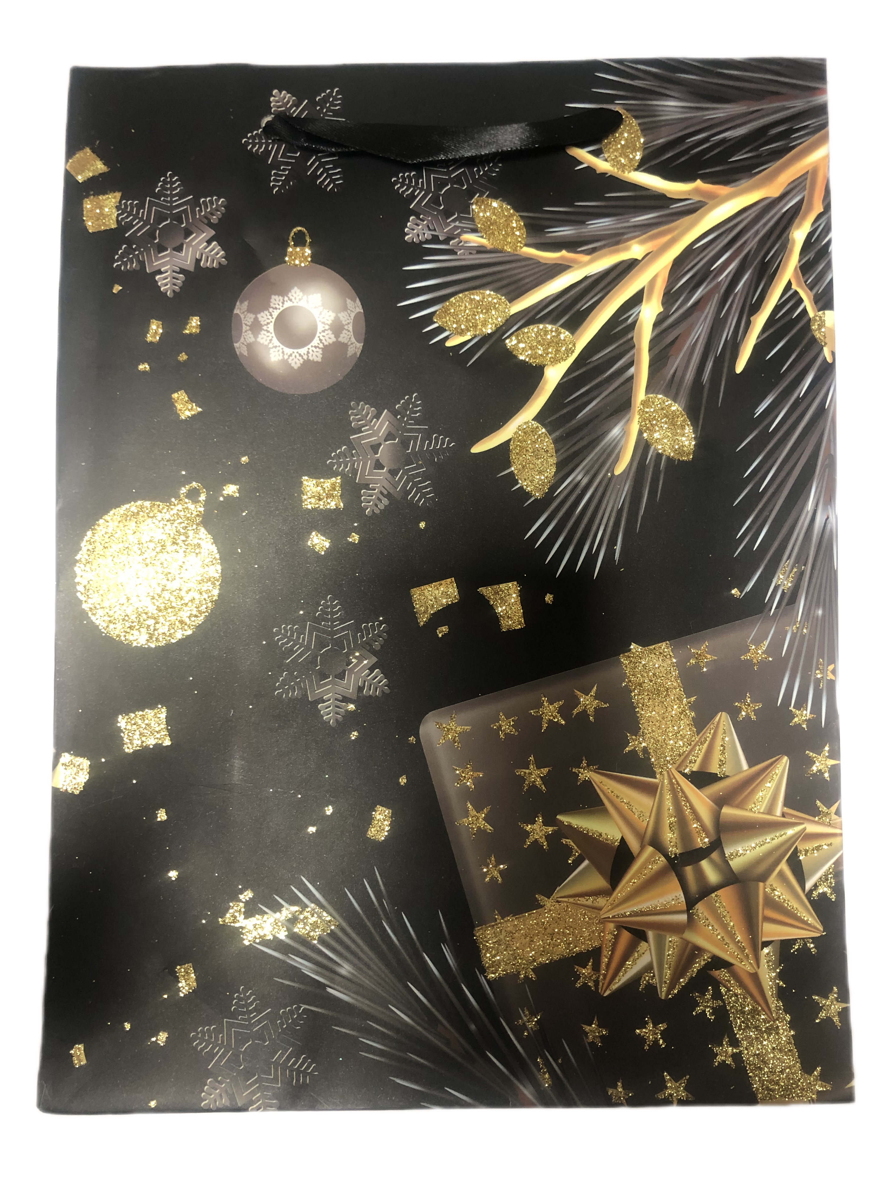 • предварительный просмотр Подарочный пакет Рождественский золотой 18*24*8см