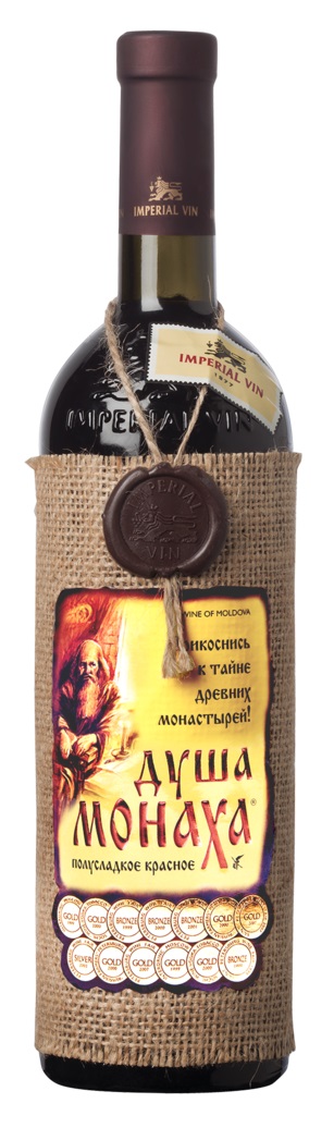 Красное полусладкое вино Duša Monacha 0,75 л изготовлено из отборных сортов винограда Merlot, Pinot Noir и Cabernet Sauvignon, выращенных в долине реки Прут. Вино имеет тёмно-красный цвет с глубокими фиолетовыми оттенками, концентрированный фруктовый букет и нежные цветочные ноты с оттенком ванили. Вино с богатым и свежим послевкусием с вкусом вишни и красной смородины.