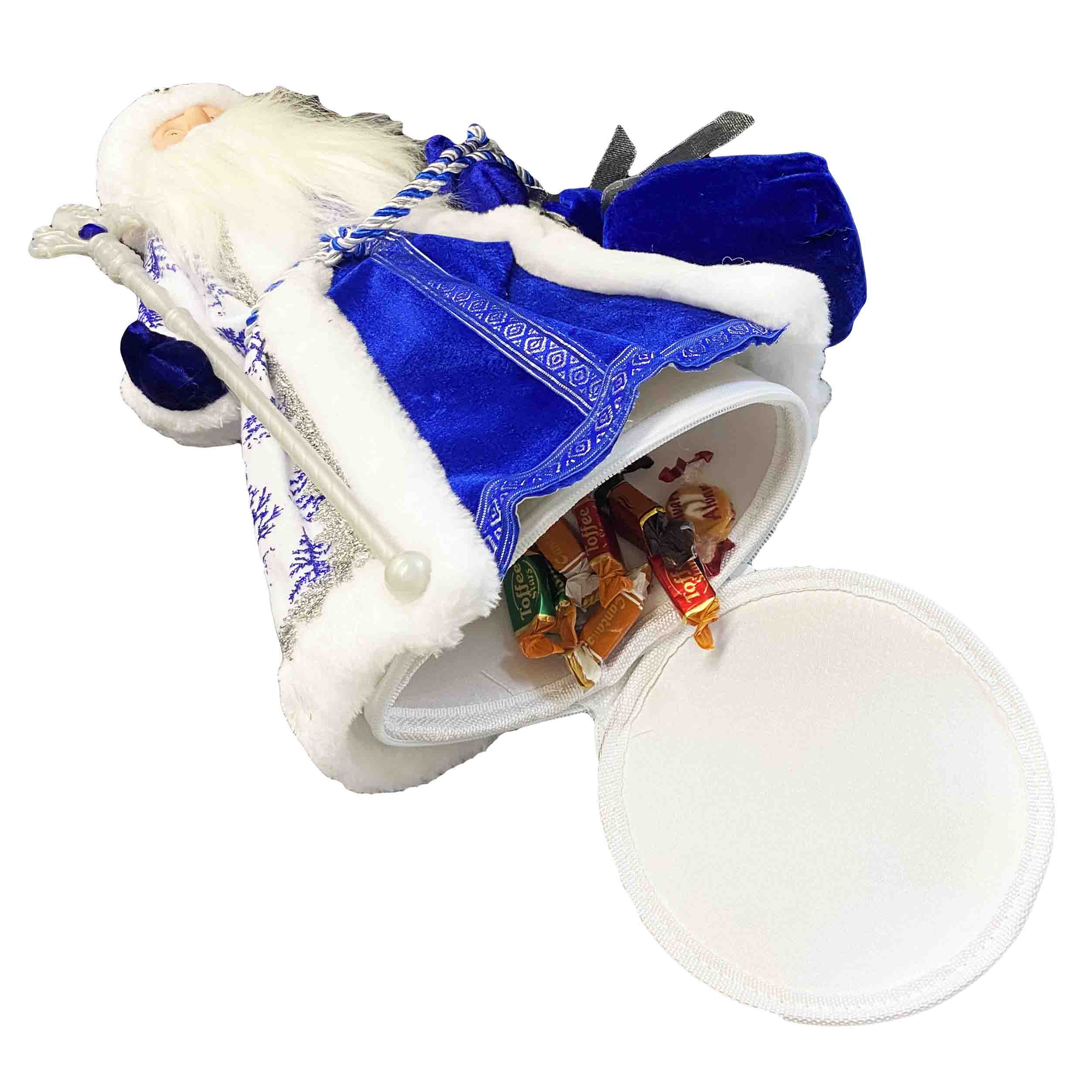 Фигурка Деда Мороза в сине-белом с серебром, с отделением для сладостей и подарков, 40 см