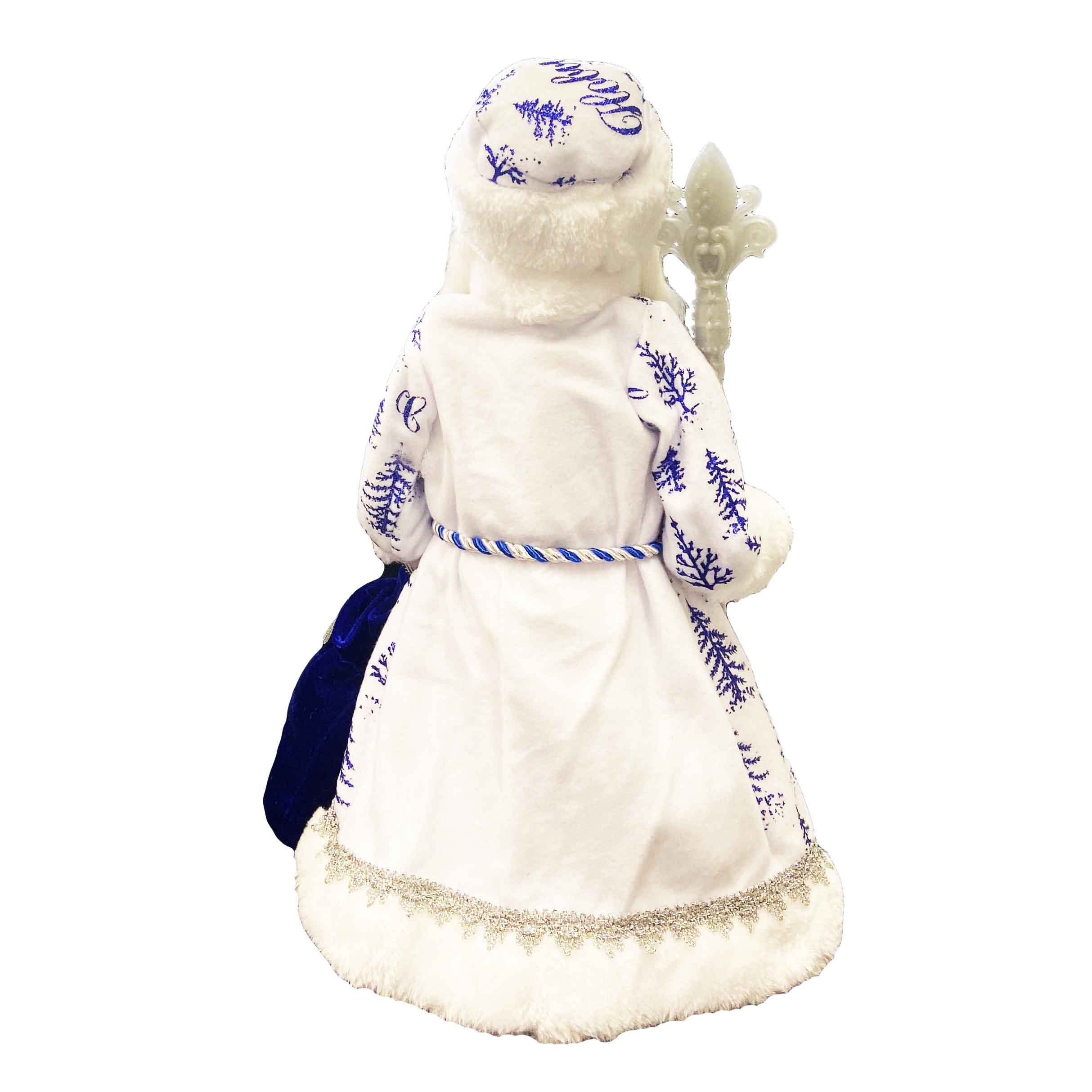 • предварительный просмотр Фигурка Деда Мороза в сине-белом с серебром, с отделением для сладостей и подарков, 40 см