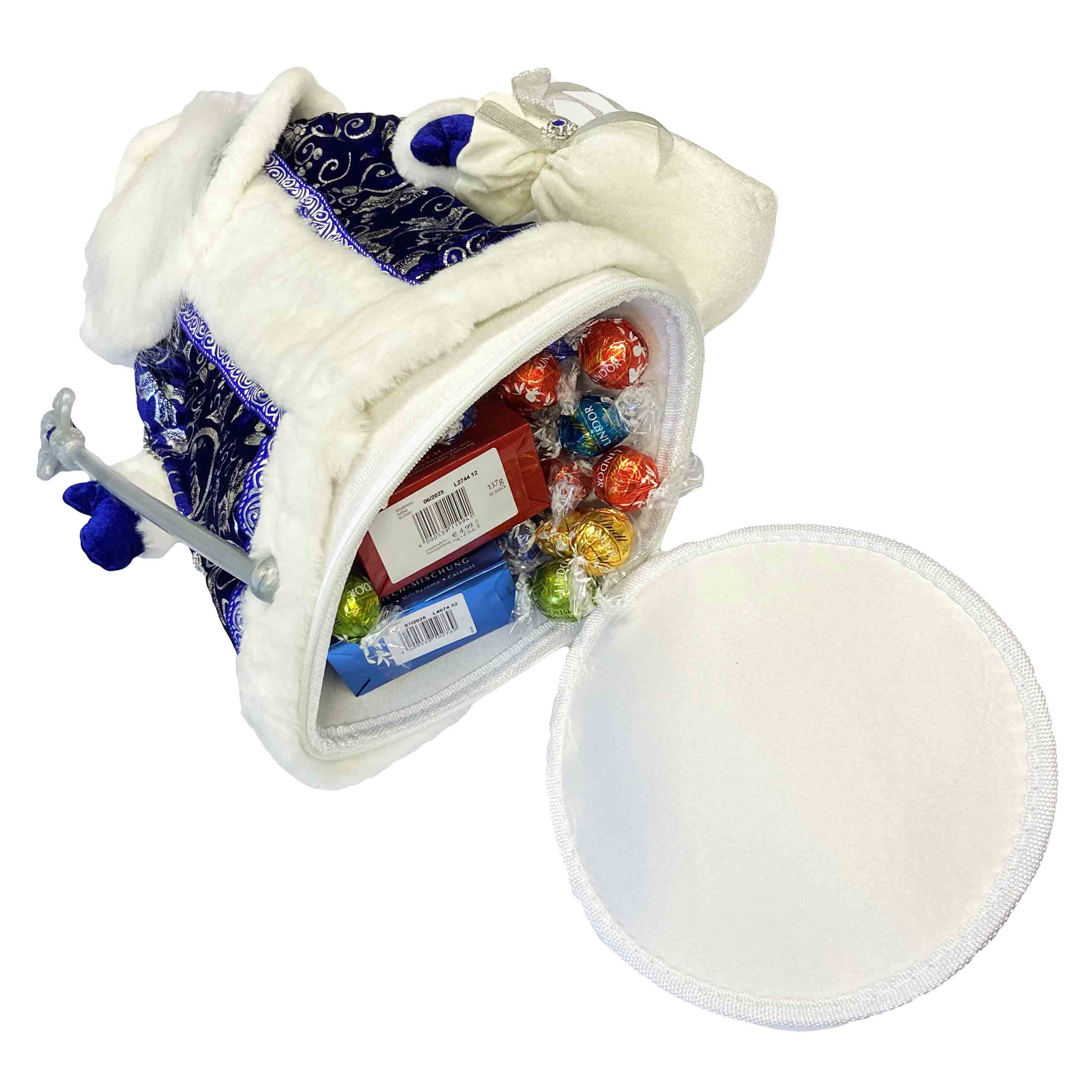 Фигурка Деда Мороза в сине-белом с серебром, с отделением для сладостей и подарков, 50 см