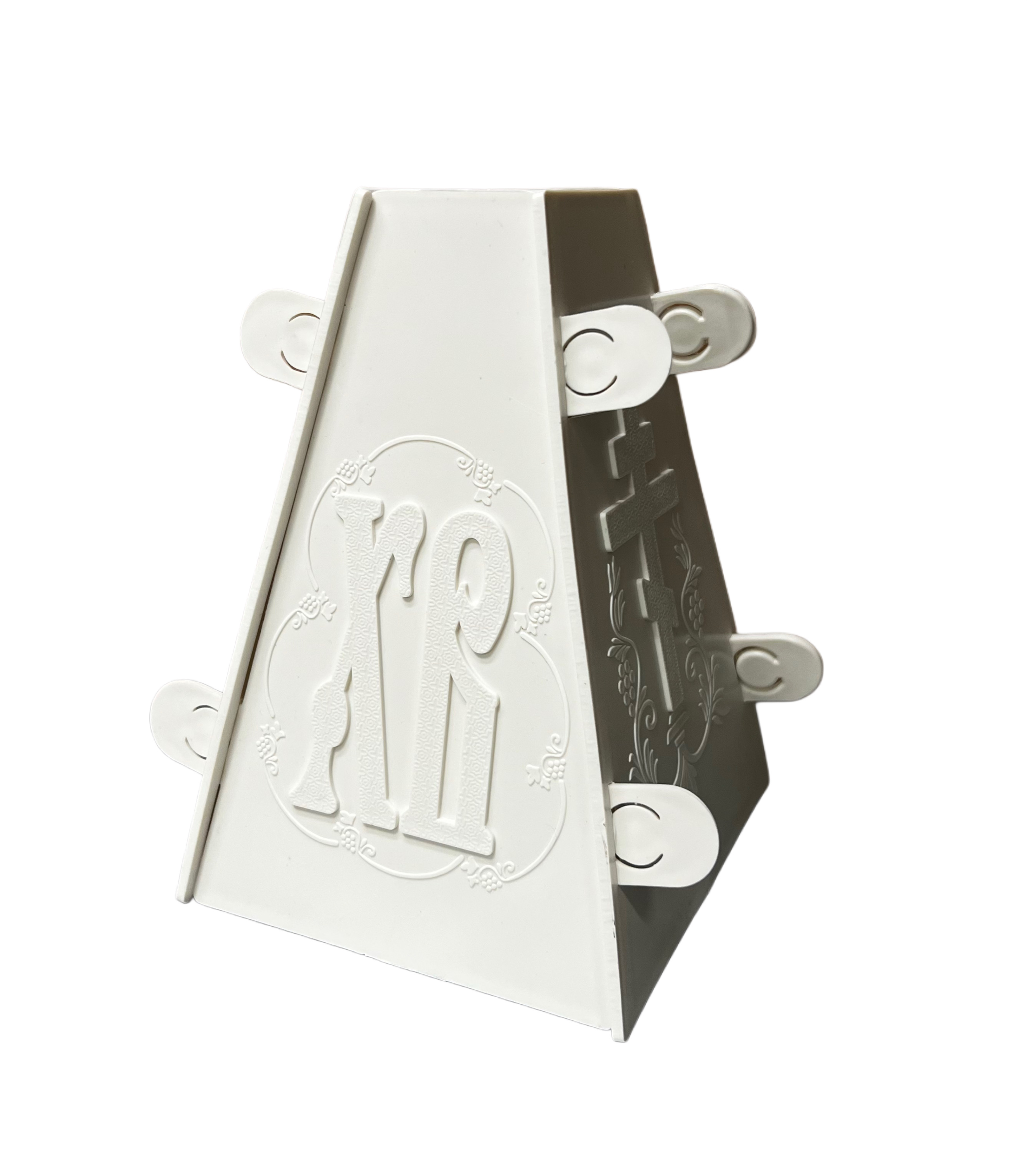 Форма для творожной пасхи или Пасочница состоит их 4 пластиковых частей с красивым рельефным тиснением на пасхальную тематику, которые легко соединяются между собою специальными защелками, формируя пластиковою пирамиду. К форме прилагается подробный рецепт приготовления творожной пасхи.