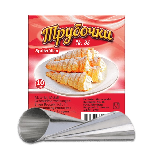 Примите вызов приготовления домашних кремроллов. С этими формами это легко сделать. Они изготовлены из оцинкованной стали, с которой тесто легко отделяется. В упаковке вы найдете 10 штук (с диаметром 35 мм) трубочек.