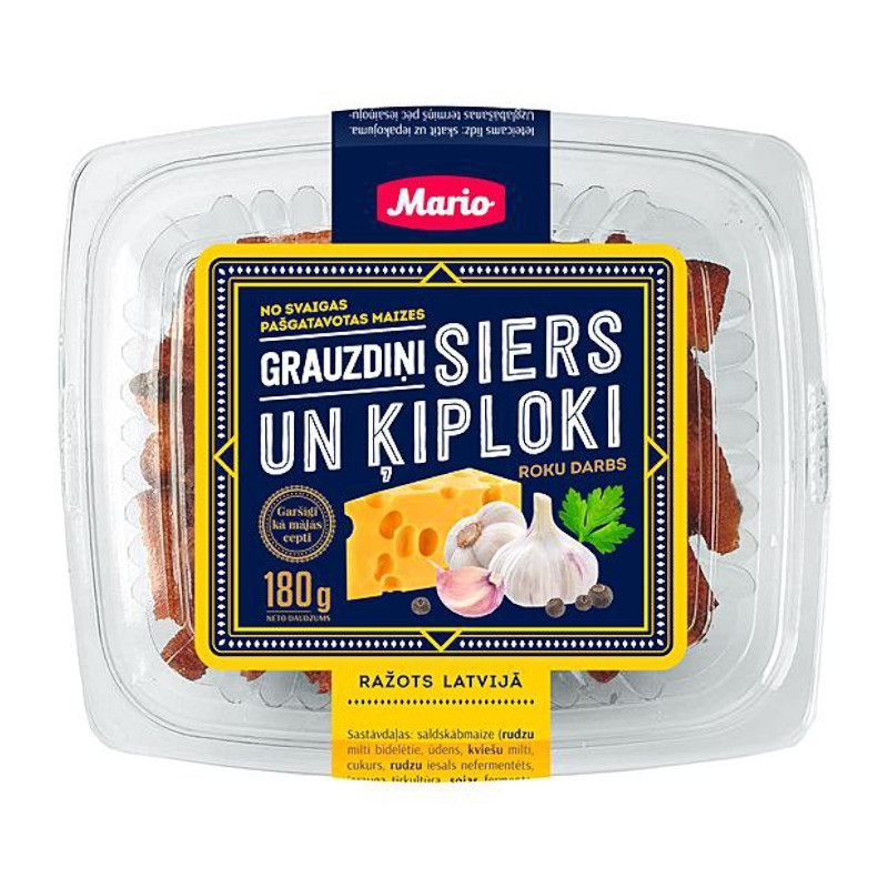 Состав: хлеб на закваске (ржаная мука, вода, пшеничная мука, светлый инвертный сироп (сахар, вода, регуляторы кислотности: лимонная кислота, гидрокарбонат натрия), ржаной солод, дрожжи (ржаная мука, вода, дрожжевая культура), улучшитель (пшеничная мука , усилитель (пшеничная мука, пшеничная солодовая мука, пшеничный глютен, мука ацеролы, ферменты), дрожжи, соль, рапсовое масло, тмин, пшеничные отруби), рафинированное рапсовое масло, сырный порошок 5,4% (сыр, эмульгатор: E339ii), чеснок 1,4%.
