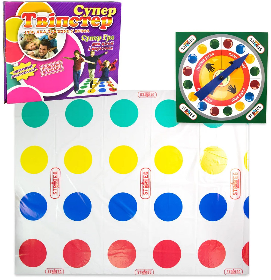 Веселая и красочная игра «Супер Твипстер» для большой компании – лучший способ сдружиться, развлечься и испытать гибкость своего тела! В нее могут играть дети вместе с родителями, твистер станет любимым семейным развлечением! Победит самый ловкий и пластичный! Правила игры позволяют одержать победу за счет свой находчивости и правильно просчитанных ходов. На поле с разноцветными кружочками необходимо ставить ноги и руки на специальные круги, усложняя задачу сопернику. Иногда приходится практически завязываться в узел. Предложи друзьям присоединиться и играйте большой компанией.