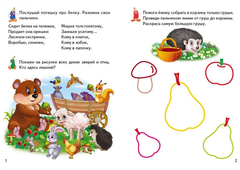 Предлагаемые игровые прописи как раз рассчитаны на этот возрастной период. Хотя большие, красочные иллюстрации разных животных, фруктов, фигур можно использовать в ознакомительных целях и раньше.