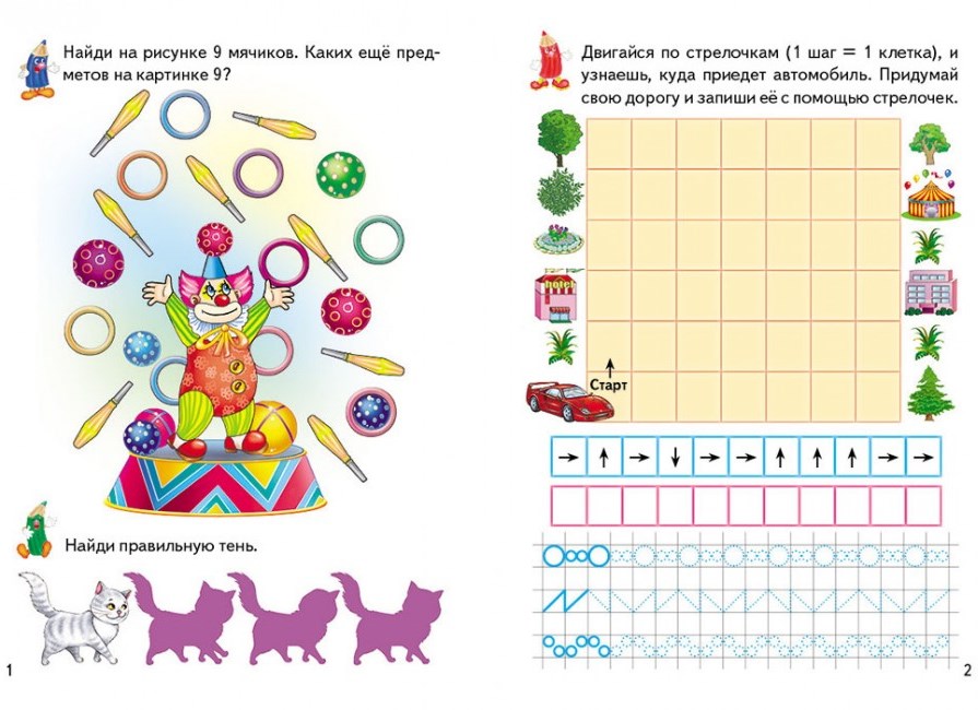 В книге яркие, красочные картинки, интересные лабиринты, картинки-путаницы и интересные прописи на развитие навыков письма.