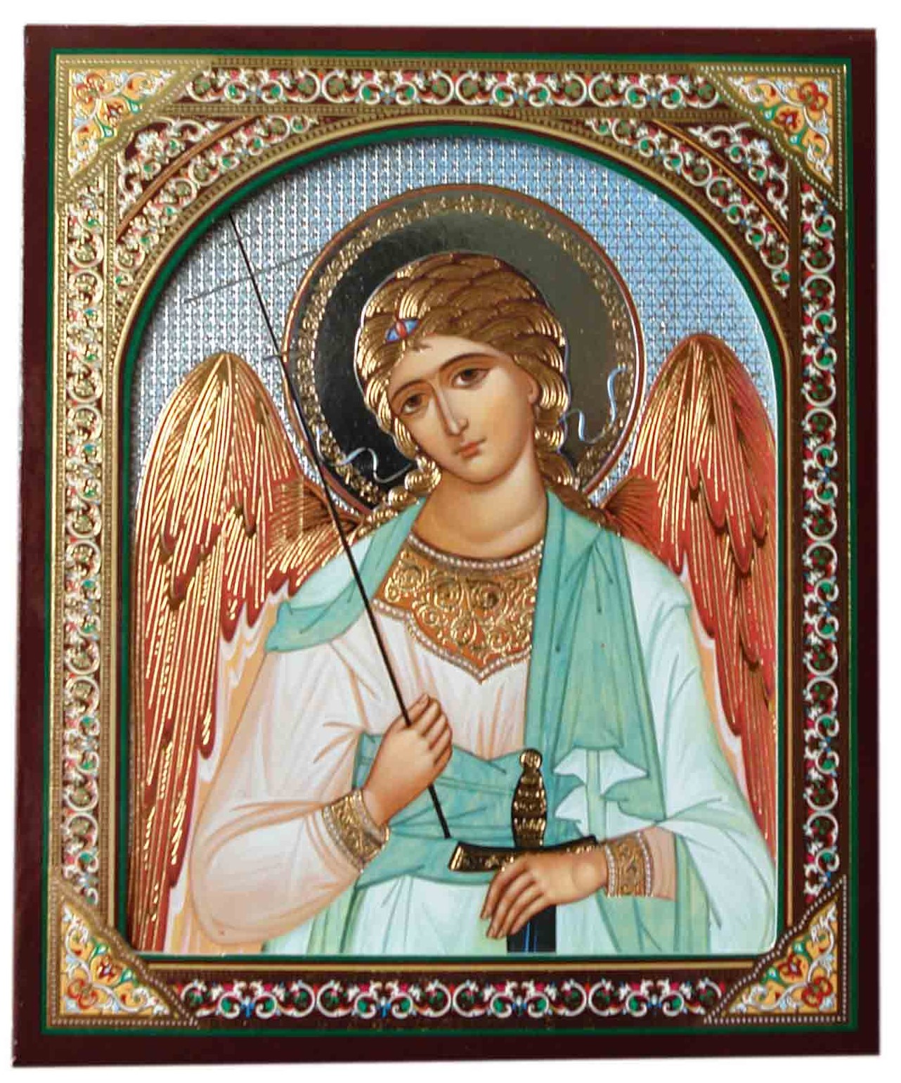 Икона деревянная Ангел Спаситель в киоте (синий фон)