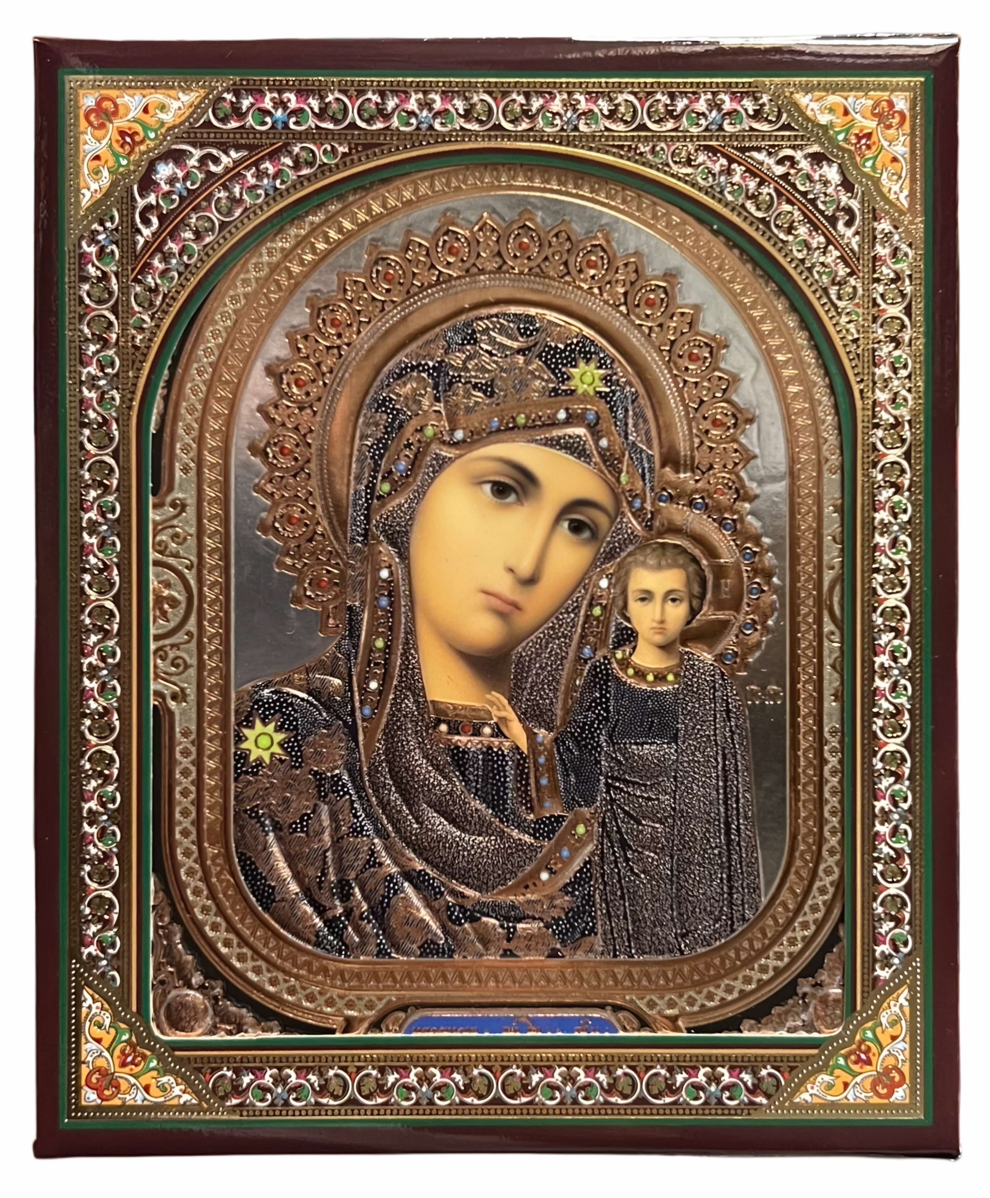 Икона деревянная Казанская 10х12см в киоте (серебреный фон)