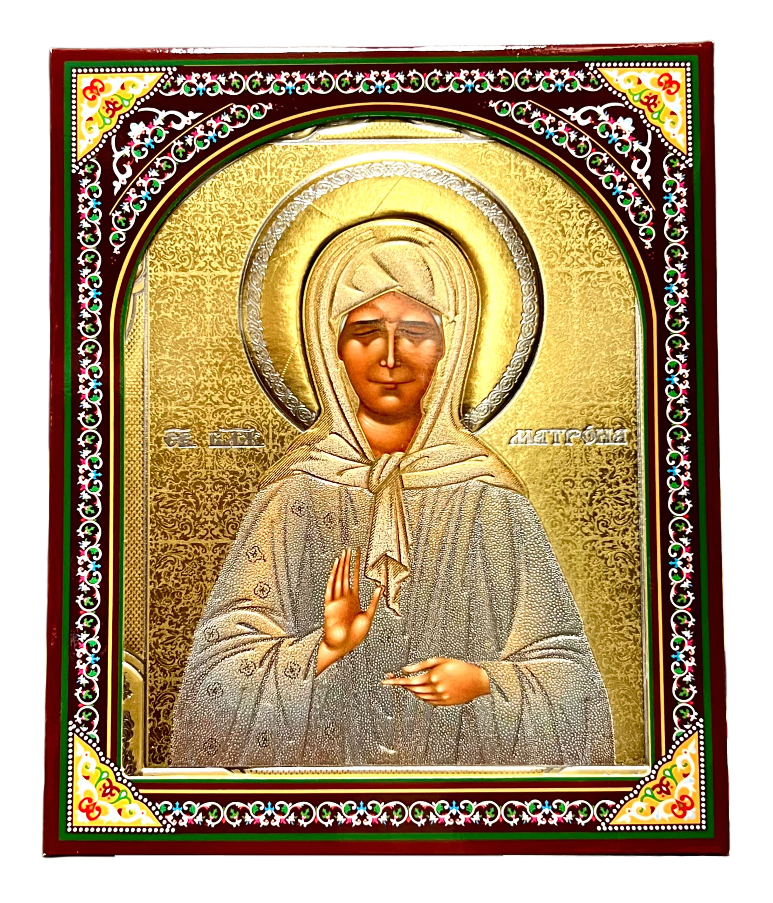 Икона деревянная Матрона в киоте (золотой фон)