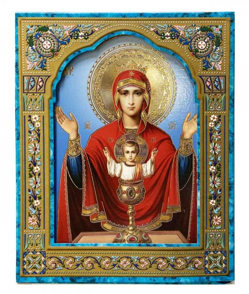 Икона деревянная Неупиваемая чаша 15х18см в синем футляре