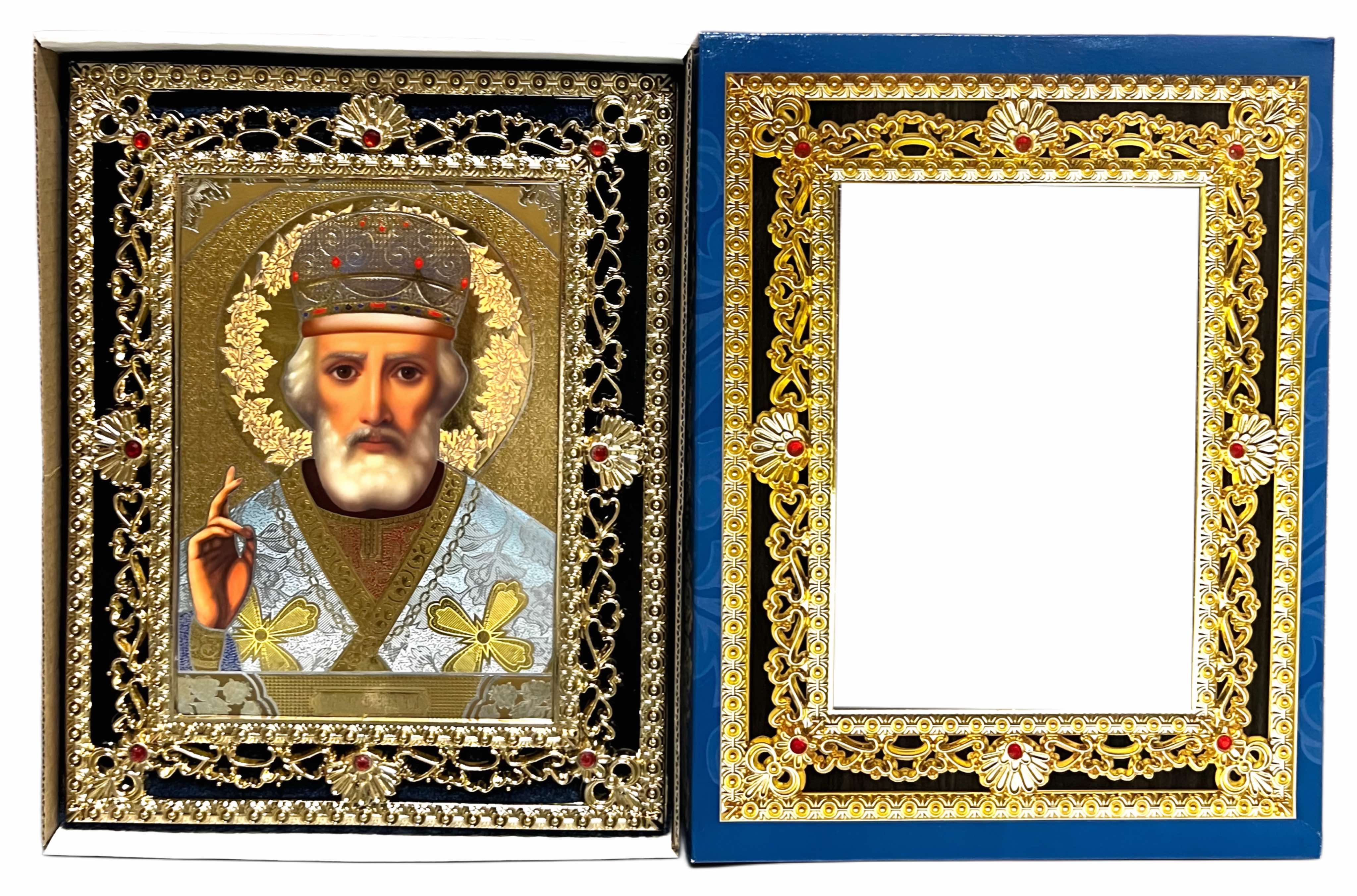• предварительный просмотр Икона деревянная Николай 15х18см в синем киоте