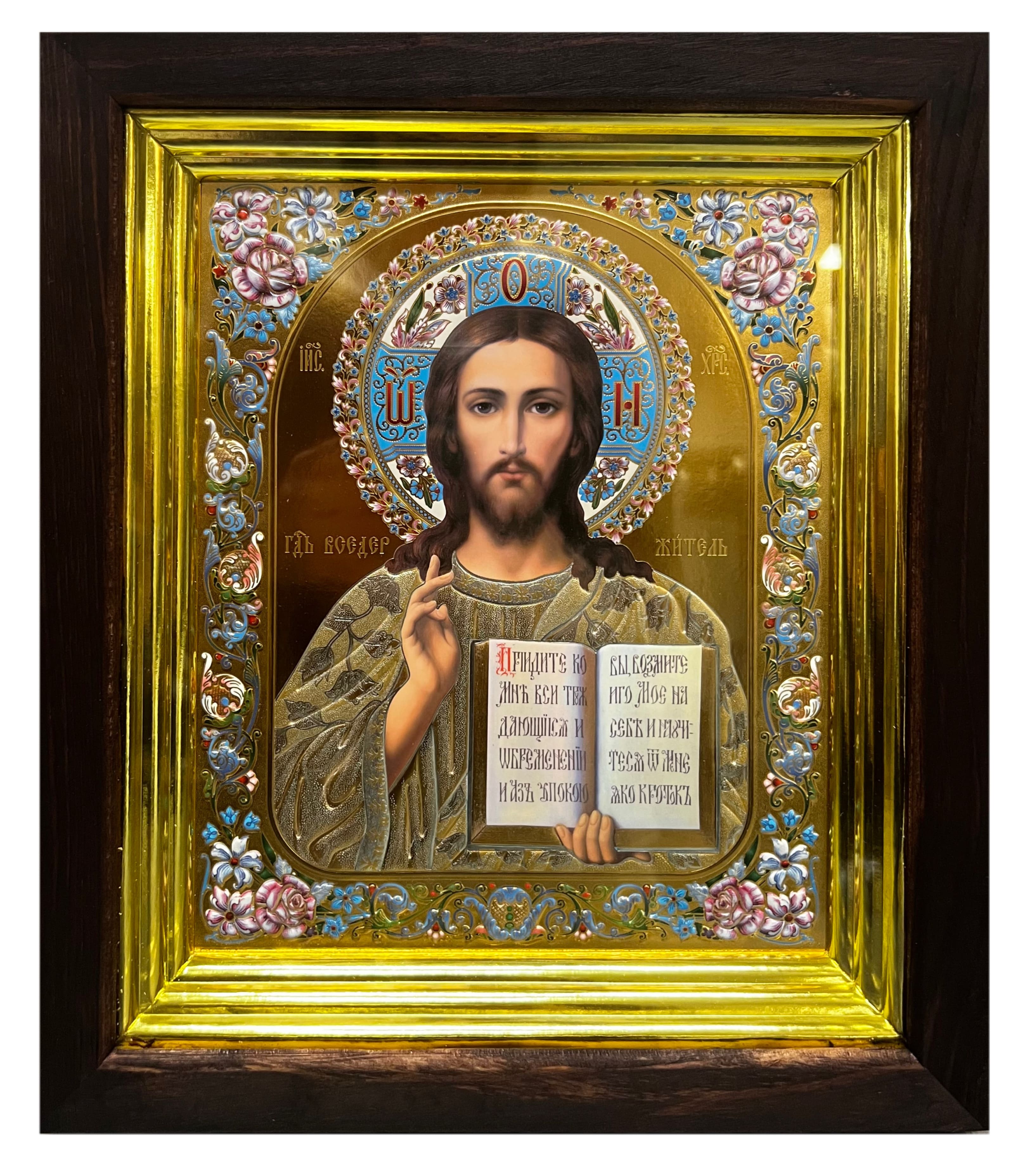 Икона деревянная со стеклом 17х20см Спаситель (золотой)