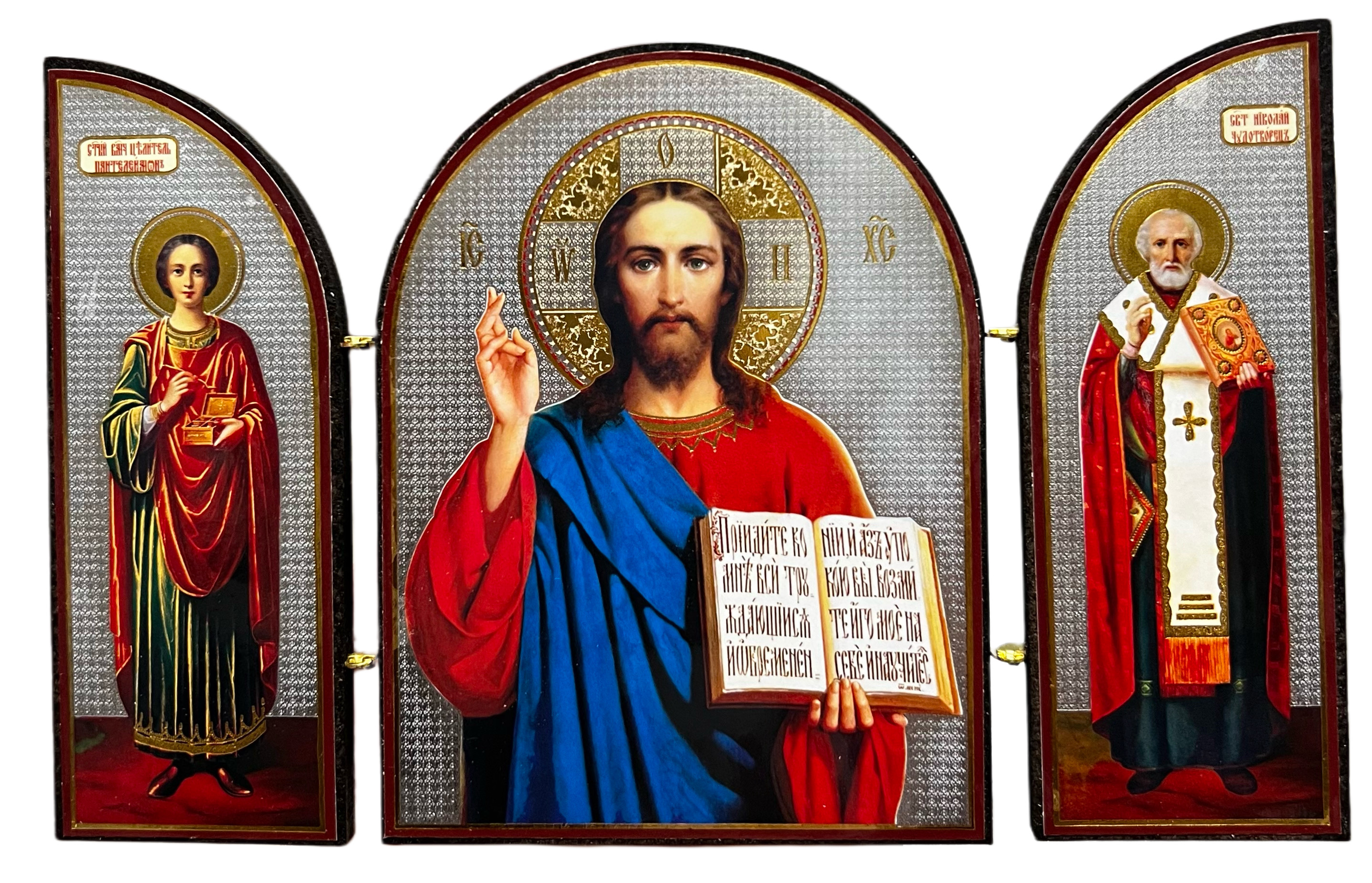 • предварительный просмотр Икона Вседержитель 9х12см тройная деревянная