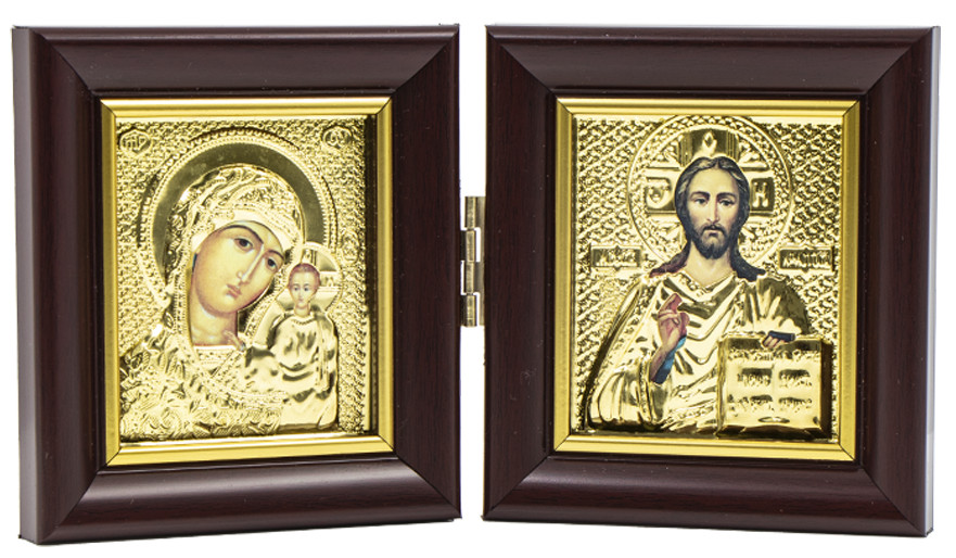 Икона Казанская-Спаситель 6х9см двойная.