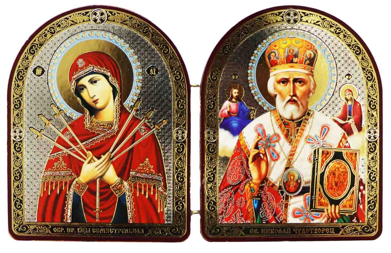Икона Семистрельная и Николай 12x18 см деревянная двойная