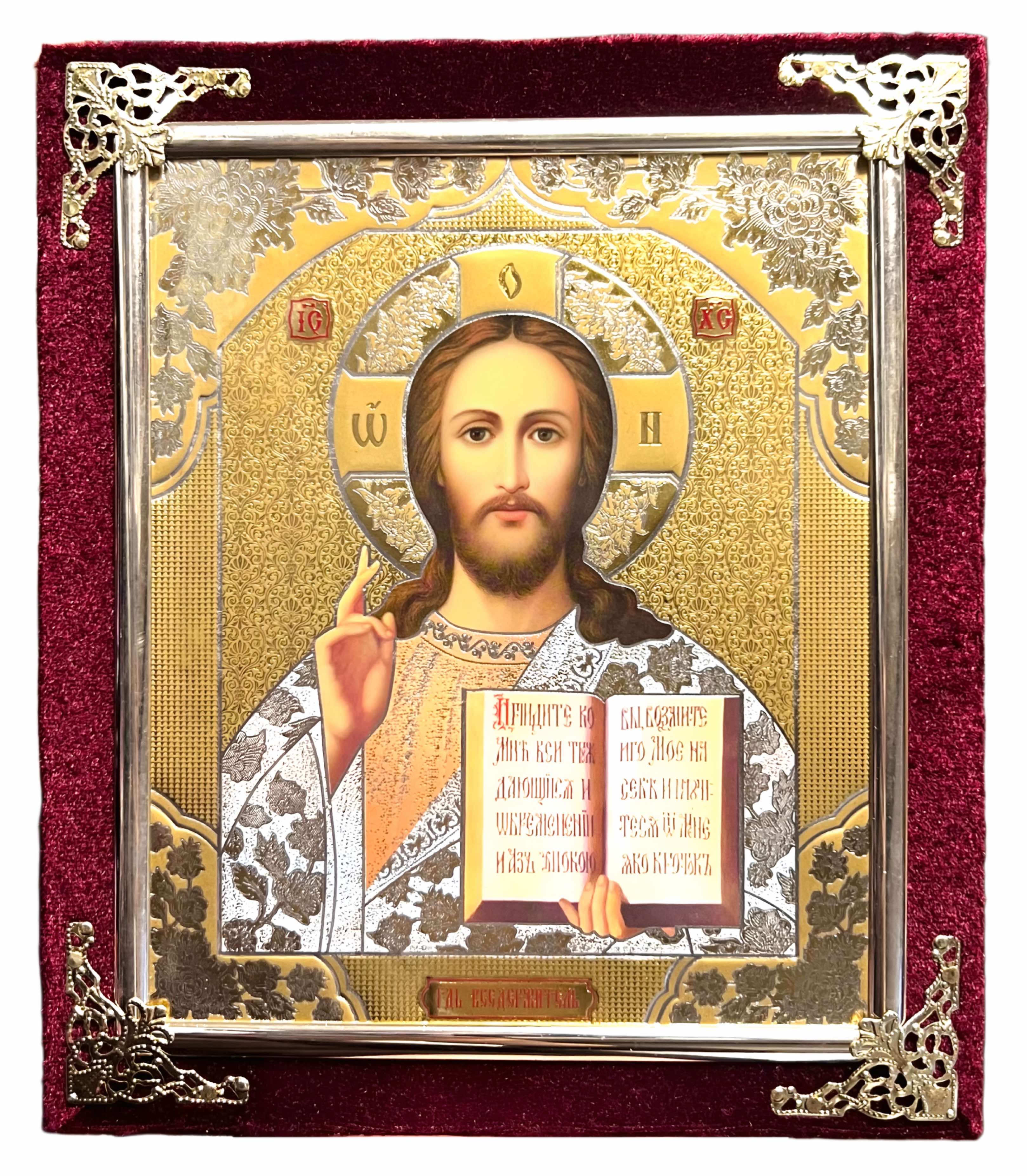 • предварительный просмотр Икона в бархате 15х18см Спаситель(красная)