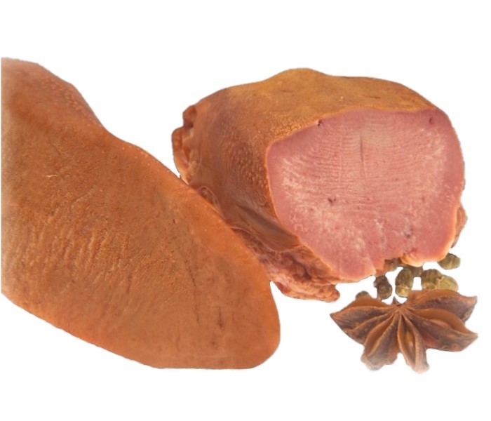 Složení: vepřový jazyk, kuchyňská sůl, glukózový sirup, látka zvýrazňující chuť a vůni: glutaman sodný, stabilizátor: difosfát, antioxidant: (kyselina askorbová, askorban sodný), aromata, konzervant: dusitan sodný, kouř.