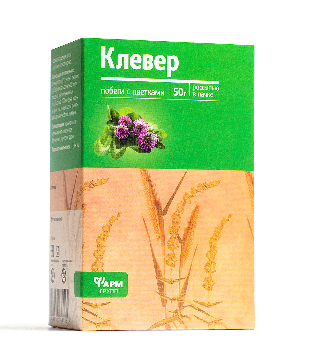Состав: клевер луговой – верхушечные побеги с цветками – 100 %.