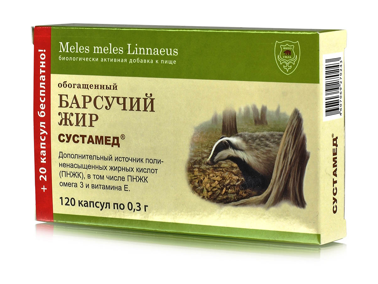 Барсучий жир в капсулах 36 г, 120 капсул Сустамед Биологически активная добавка