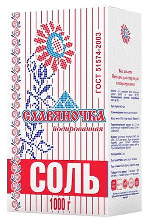 Йодированная соль Славяночка — это высококачественный продукт, обогащённый йодатом калия, необходимым для поддержания здоровья щитовидной железы. Она прекрасно подходит для повседневного использования в приготовлении пищи, улучшая вкус блюд и обогащая рацион важным микроэлементом.