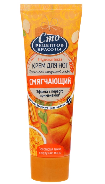 Dýňové oleje v kompozici přispívají k intenzivní výživě a hydrataci, jemně čistí pokožku od mrtvých buněk. Krém na nohy s unikátním složením se podílí na přirozené syntéze kolagenu, který je nezbytný pro pevnost a pružnost povrchu chodidel. Olej získaný z dýňové dužiny pokožku zklidňuje, účinně a pečlivě ji chrání před podrážděním a zánětem. Pravidelná péče o nohy pomocí krému pomáhá předcházet otlakům a žilkám. Výrobek nevyvolává alergické reakce. Krém také obsahuje kukuřičný olej, který obnovuje ochranné funkce pokožky, intenzivně vyživuje, zjemňuje a zvlhčuje povrch chodidel a podpatků. Složka je také zodpovědná za účinné obohacení buněk o užitečné stopové prvky a vitamíny a zároveň pomáhá eliminovat zápach potu.