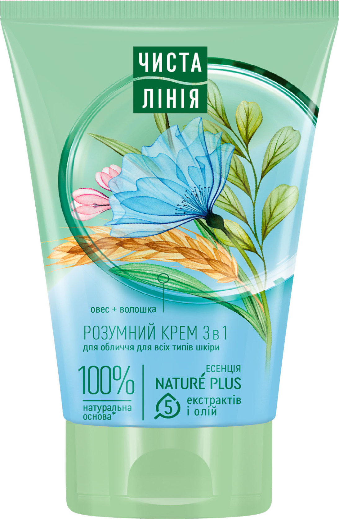 Умный крем для лица и шеи 3 в 1 обладает особой формулой, обеспечивающей оптимальное питание и увлажнение кожи на протяжении всего дня. Отвар из цветков василька прекрасно увлажняет и смягчает кожу, способствует усвоению клетками питательных веществ.