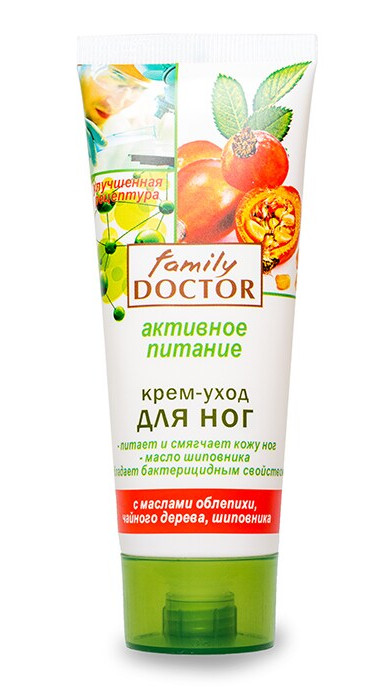 Крем‑уход Family Doctor Активное питание – эффективный крем для регулярного ухода за кожей ног. Хорошо подходит для смягчения, питания, снятия усталости и защиты стоп. Идеален для вечернего ухода, после активного дня.