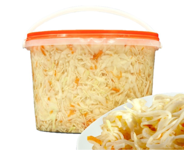 Состав: капуста квашеная, морковь, соль поваренная, вода, консервант Е202, регулятор кислотности Е330.