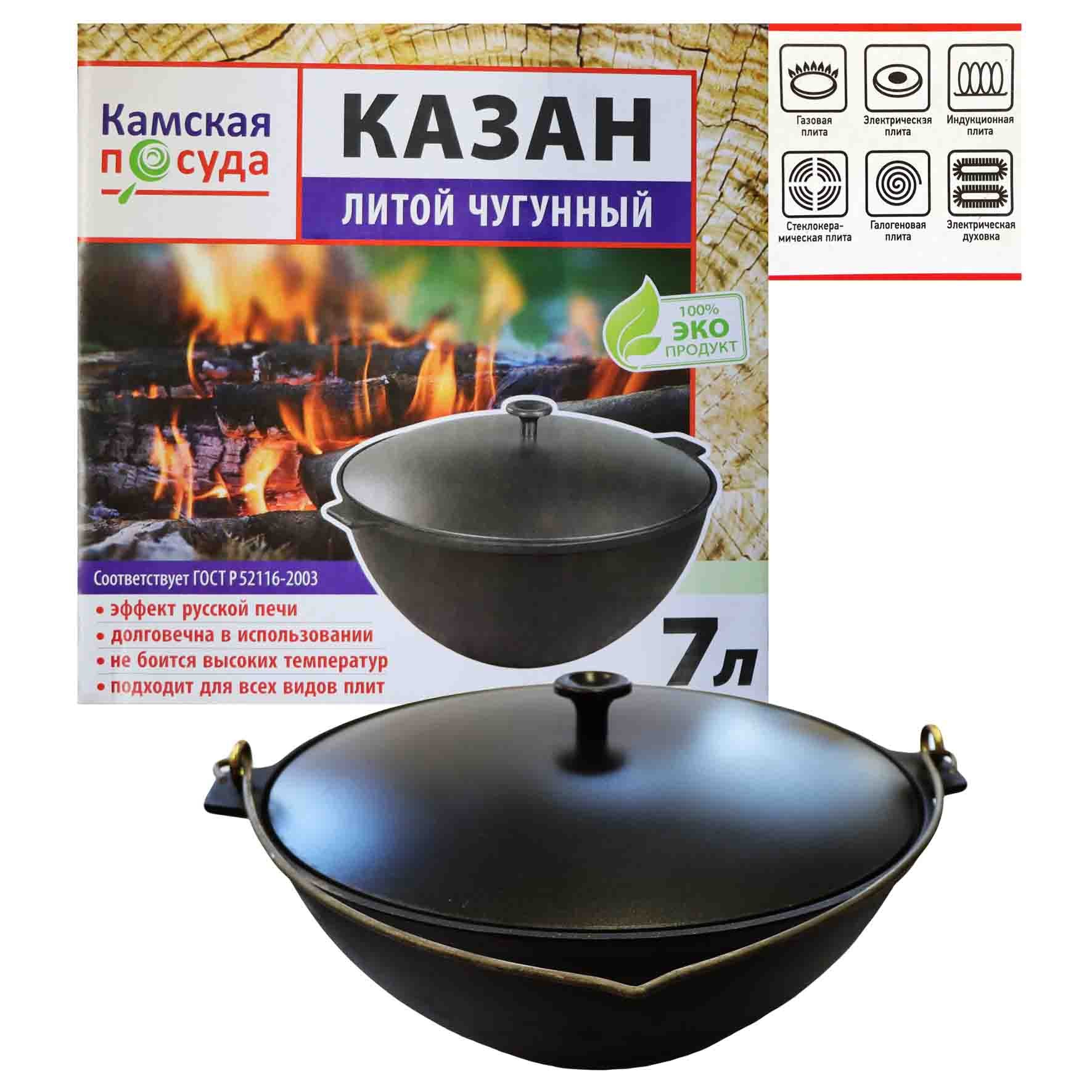 Чугунный котел с дугой и алюминиевой крышкой 7л Камская посуда
