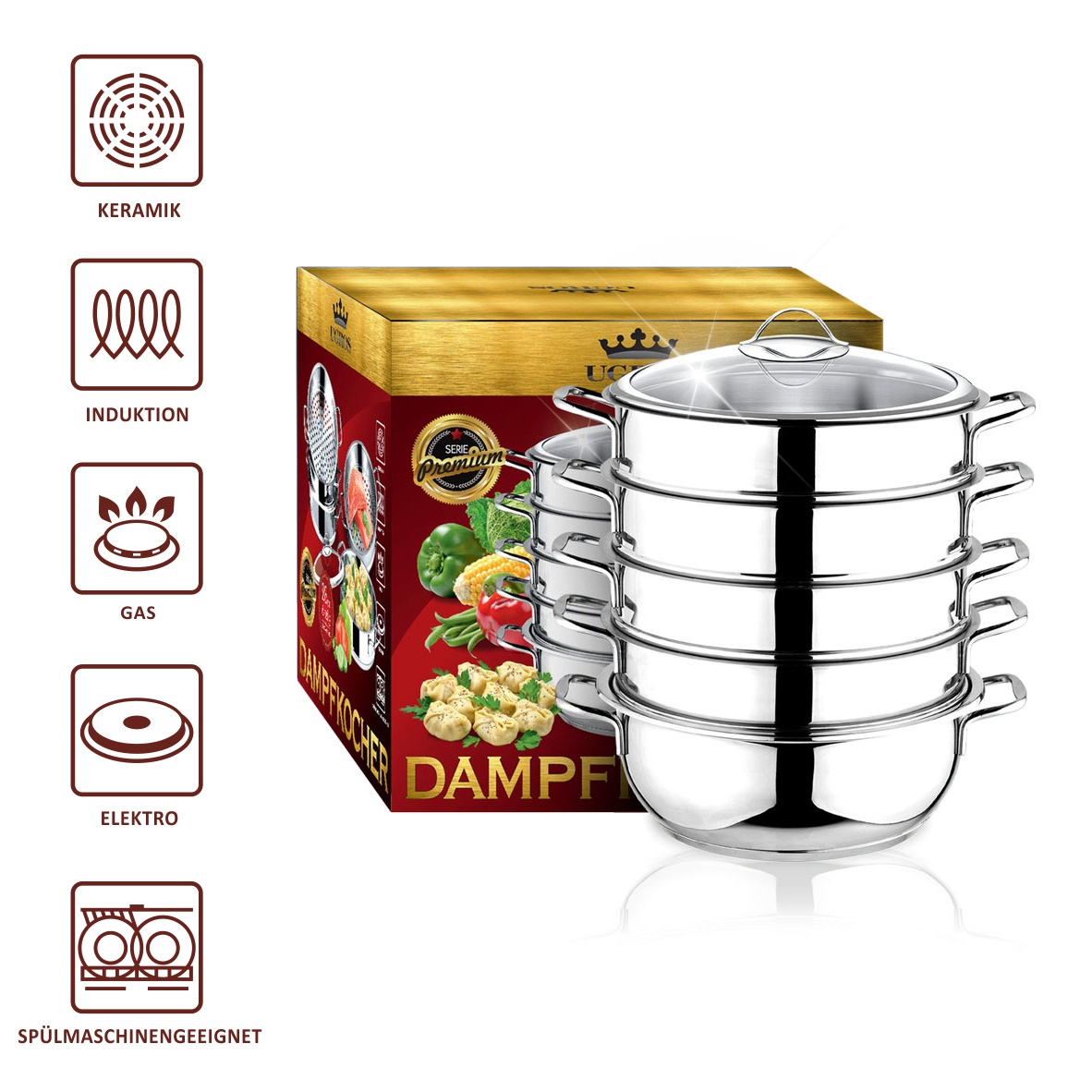 Мантоварка - это многофункциональная сковорода, в которую на дно наливается вода, затем нагревается для варки, а на верхней части, которая не контактирует с водой и имеет решетчатое дно - лопатки с отверстиями, укладываются манты (или другие изделия). Через отверстия в нижней части верхних секций пар из кипящей воды достигает обработанных продуктов всех слоев, обеспечивая приготовление.