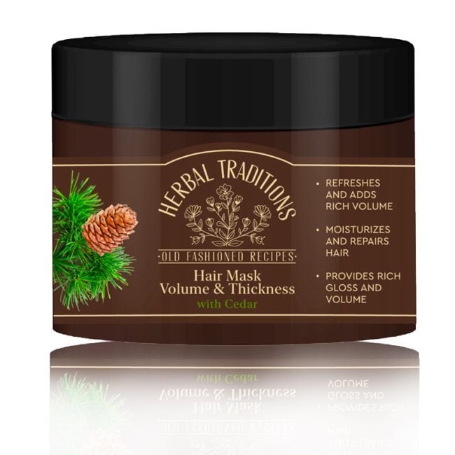 Маска для объема и густоты волос Herbal Tradition с кедром, увлажняет и восстанавливает волосы, придает им энергию, насыщенный блеск и объем, придает волосам силу, не утяжеляет их, помогает бороться с секущимися кончиками.