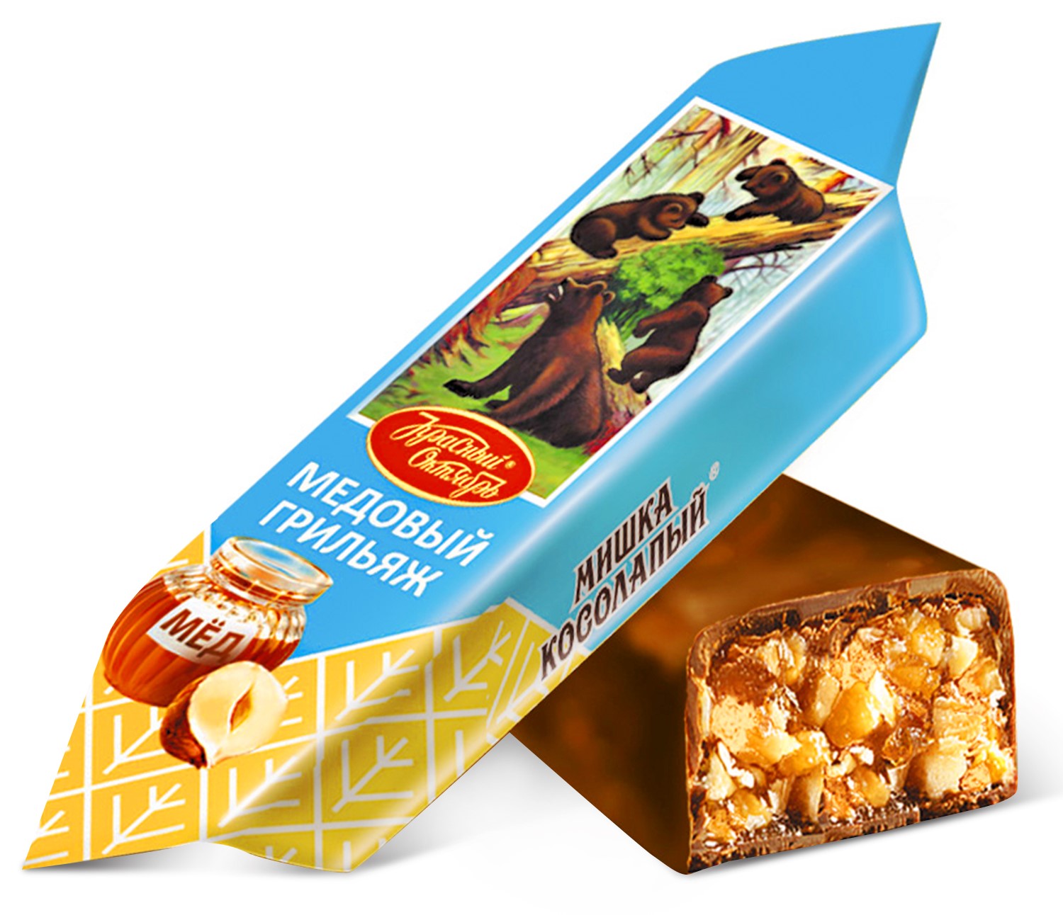 Мягкий, податливый грильяж из дробленых орехов, залитых натуральным медом, покрытый шоколадной глазурью. Конфеты тают во рту, легко раскусываются, раскрывая все грани вкуса: насыщенный ореховый, нежный медовый и терпкий шоколадный.