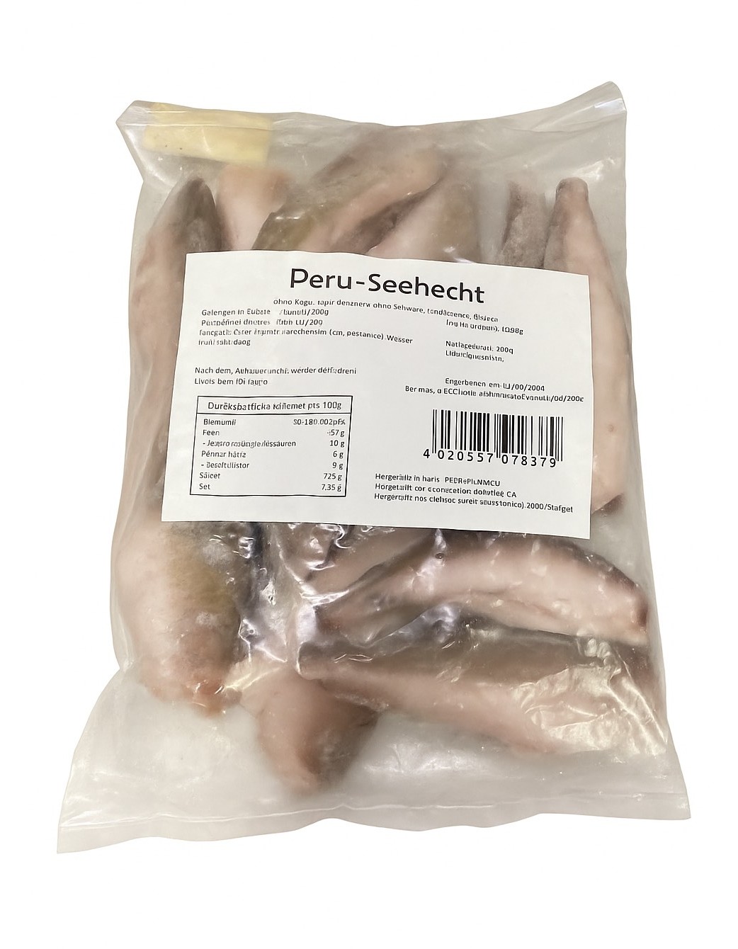 Замороженный, индивидуально упакованный перуанский хек без головы.