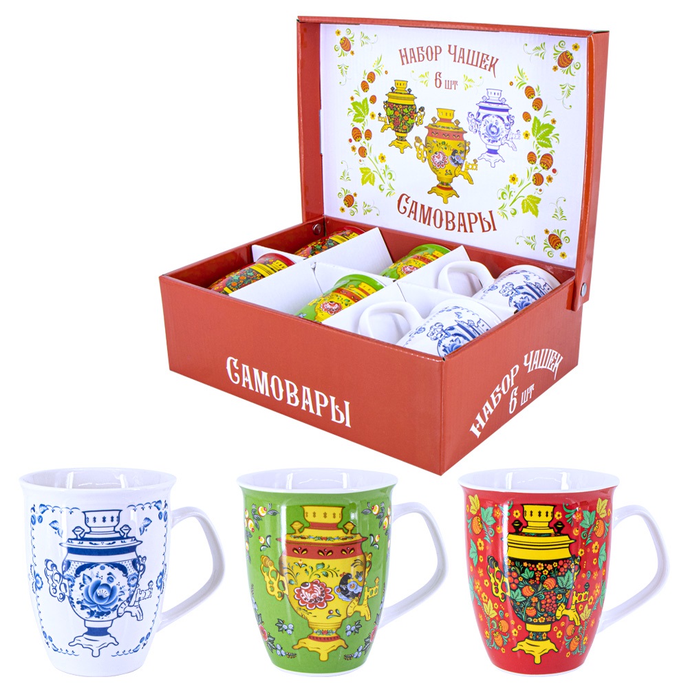 Набор кружек Самовары в подарочной упаковке. На 6 персон, 330 мл